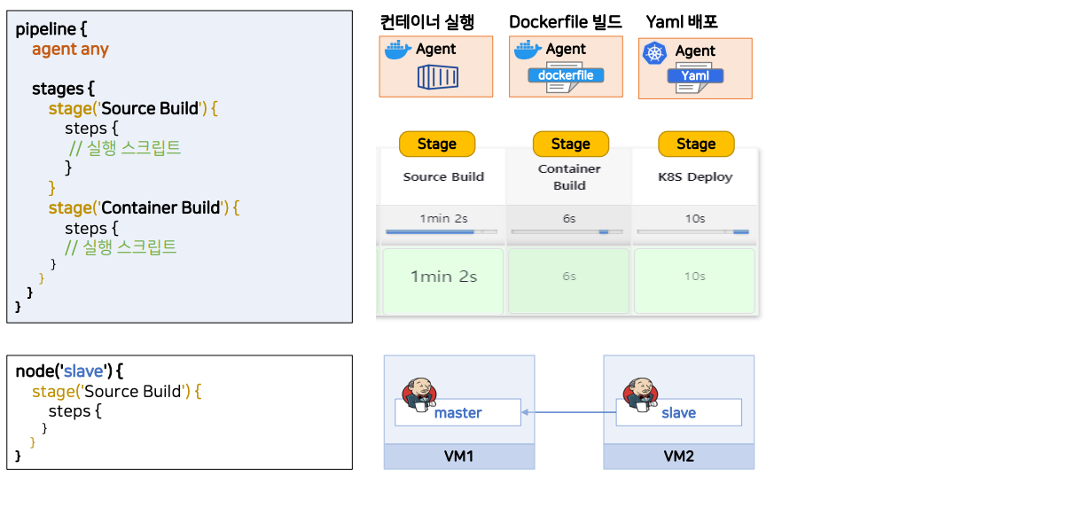 - node('slave') 로 시작하는 것은 master-slave 구조로 돌리겠다는 뜻