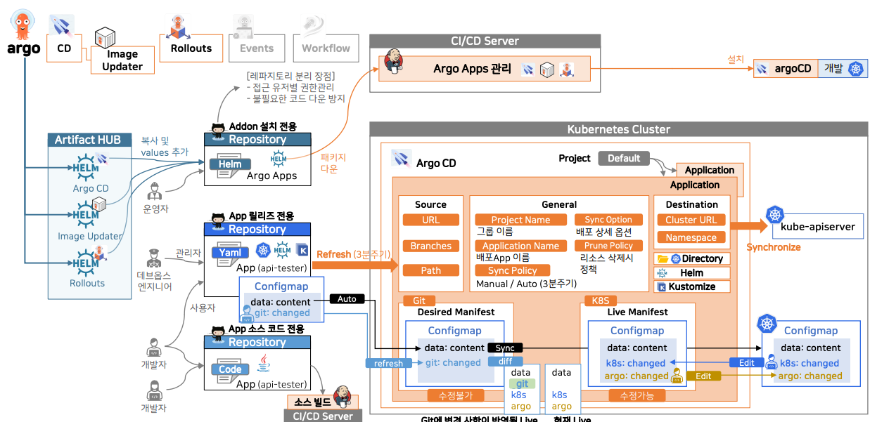 - ArgoCD는 Helm와 kustomize이 내장되어 있음