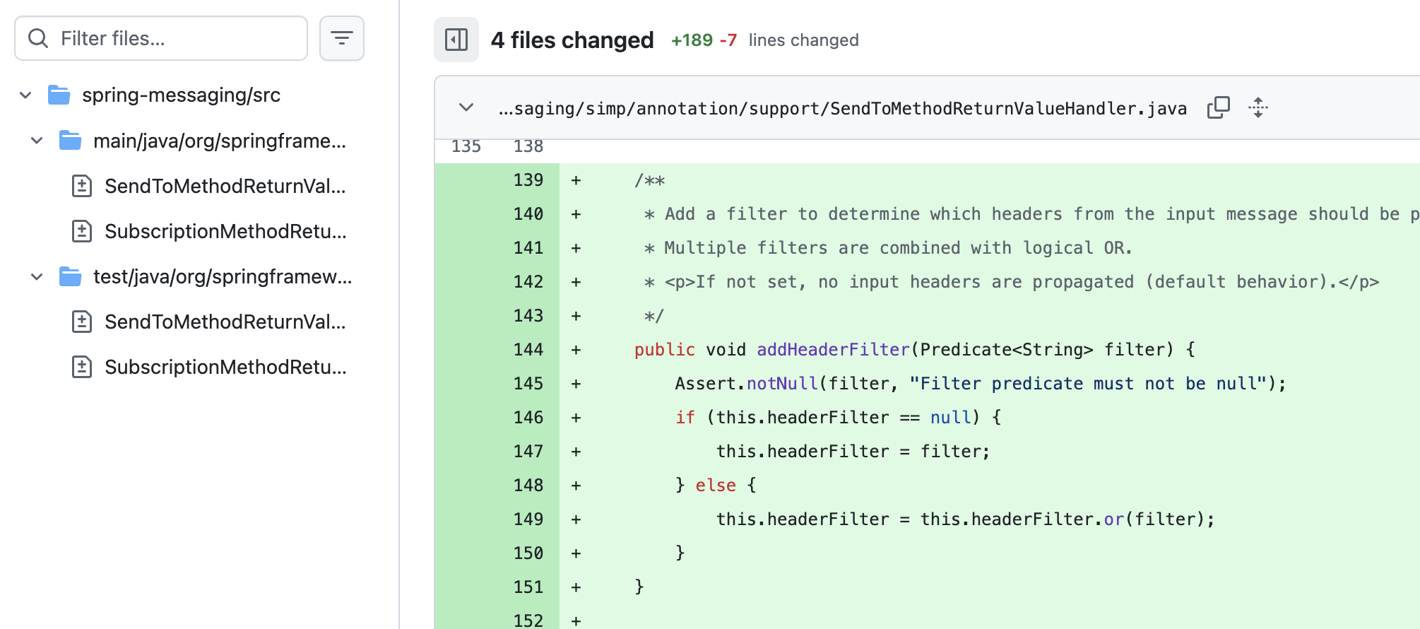 이건 좀 더 깊은 곳을 건드린 작업이었다. Spring Messaging에서 메시지를 주고받을 때, 클라이언트가 보낸 헤더를 응답에 다시 실어서 돌려주고 싶은 경우가 있다. 근데 기존에는 이걸 하려면 중간에 인터셉터로 메시지를 낚아채서 헤더를 수동으로 꺼내고, 응답할 때 다시 수동으로 넣어줘야 했다. 솔직히 좀 번거롭다.